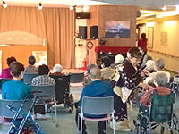 独演とは思えない迫力に、ご入居者様から「体の中の悪いものが全部出ていった感じ!」「おかげさまであと十年長生きできるよ!」と大きな歓声が上がっていました。