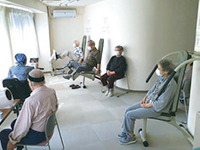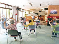 集団体操、ラジオ体操、認知症予防教室、ものづくり教室、マシントレーニング、個別機能訓練などのメニューを提供しており、また体調の確認や身体に関する相談も適時受けています。