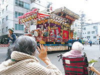 何とか程よい場所の歩道に待機していただき、見事な山車を目の当たりにして、「うわーすごいね」「綺麗だね」と行列の方々に手を振ったり、握手してもらったりと、その時の入居者皆様の笑顔がとても印象的で、楽しいひとときを過ごされたご様子でした。