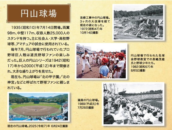 毎年7月、円山球場で行われていたプロ野球巨人戦は道民野球ファンの楽しみだった。巨人の円山シリーズは1942(昭和17)年から2000(平成12)年まで開催され、大きな盛り上がりを見せた。